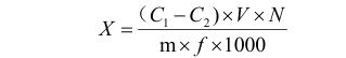 V显色液定容体积,单位为微升(mL); N为分取倍数=浸出液体积(mL)/吸取滤液体积(mL);
